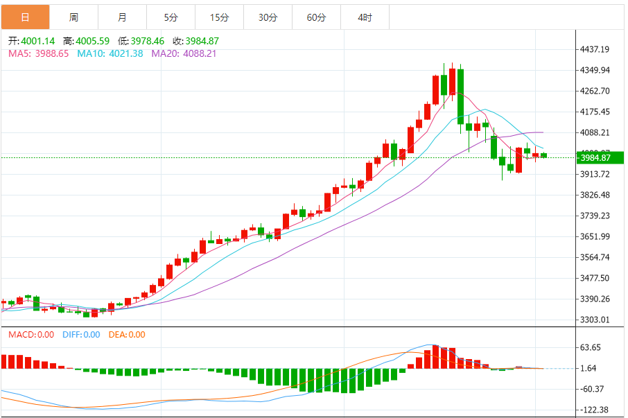 周二(11月4日)现货黄金目前在3984.79美元/盎司附近 ,下跌0.41%。