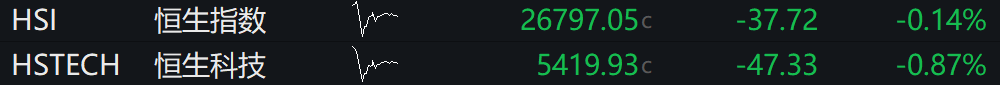 09:21 港股开盘丨恒生指数低开0.14%
