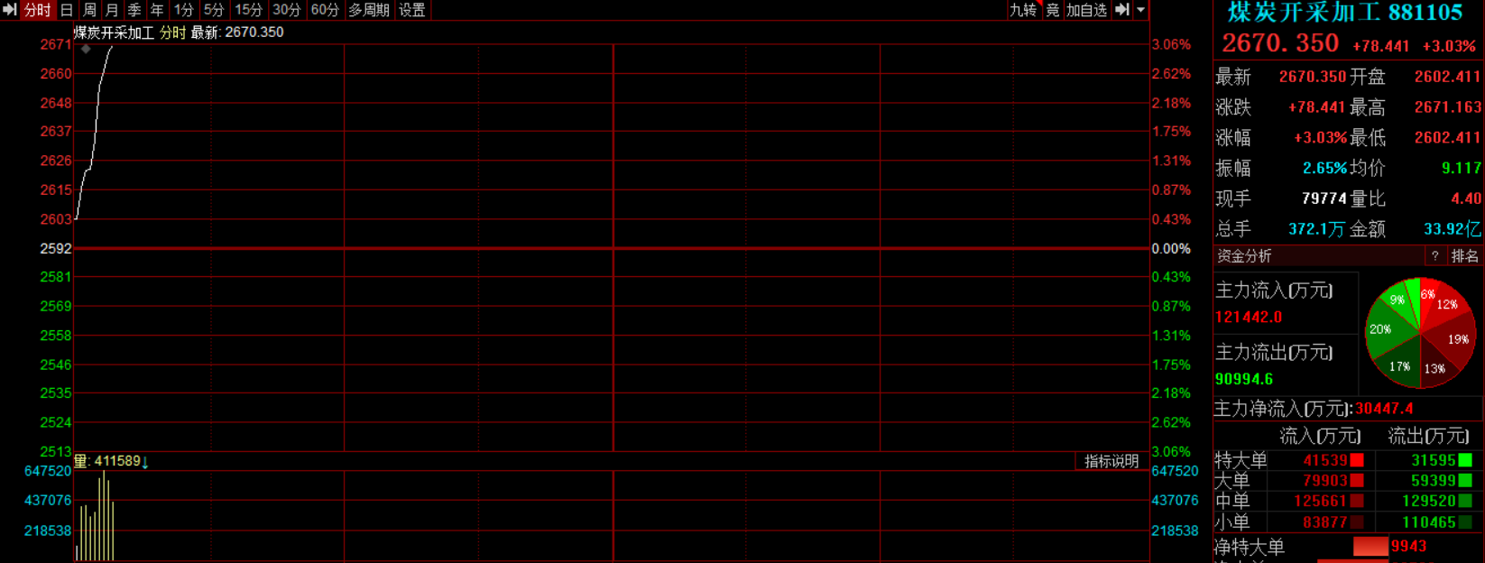 09:37 煤炭板块盘初拉升 ,兖矿能源涨超8%,晋控煤业涨超5%,潞安环能、中煤能源 、陕西黑猫跟涨。消息面上 ,据报道 ,印尼煤炭矿业协会表示,政府大幅削减生产配额可能导致部分煤矿关停,这将使该国本已陷入困境的煤炭行业雪上加霜。